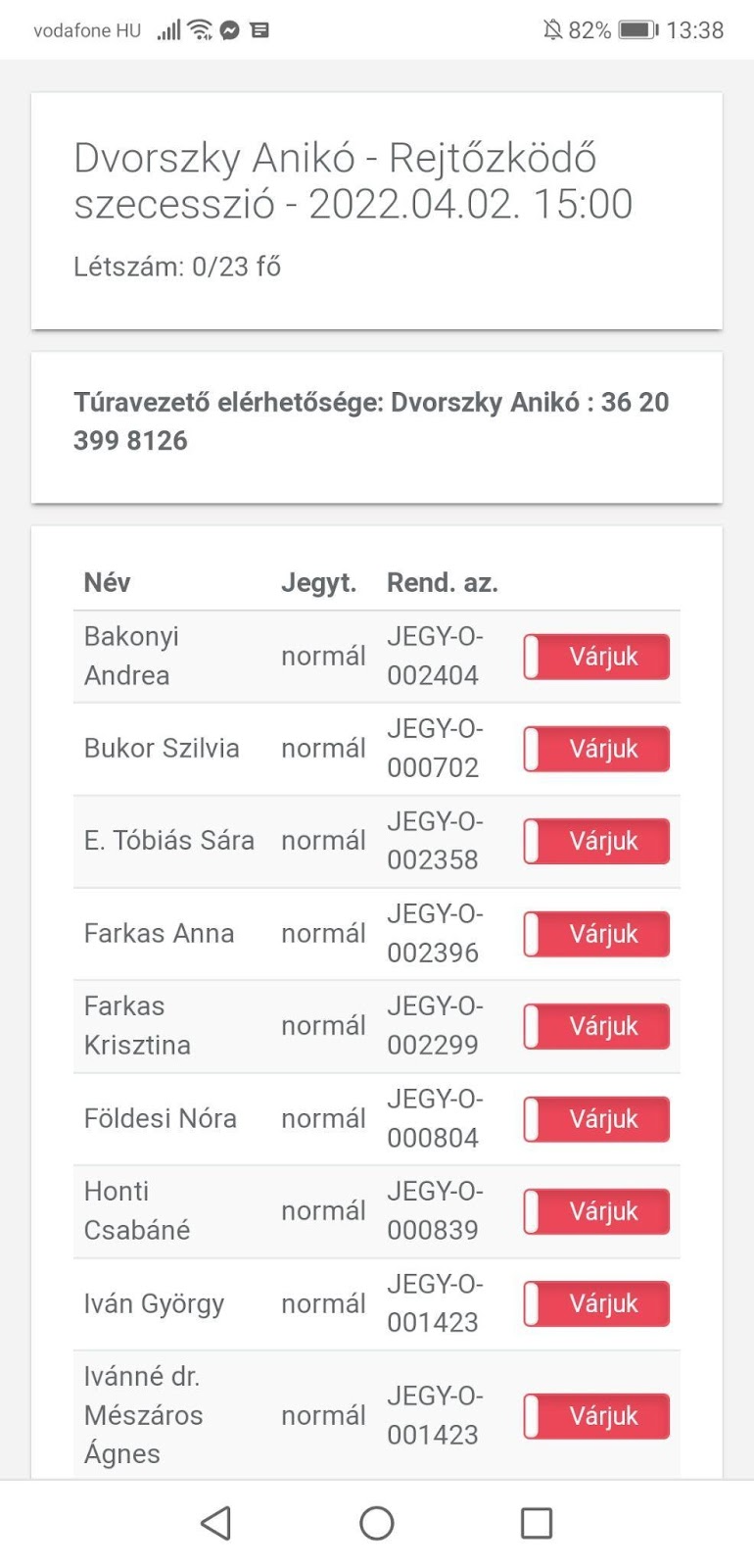 A szervezők és sétavezetők elérhetőségeinek ismerete.